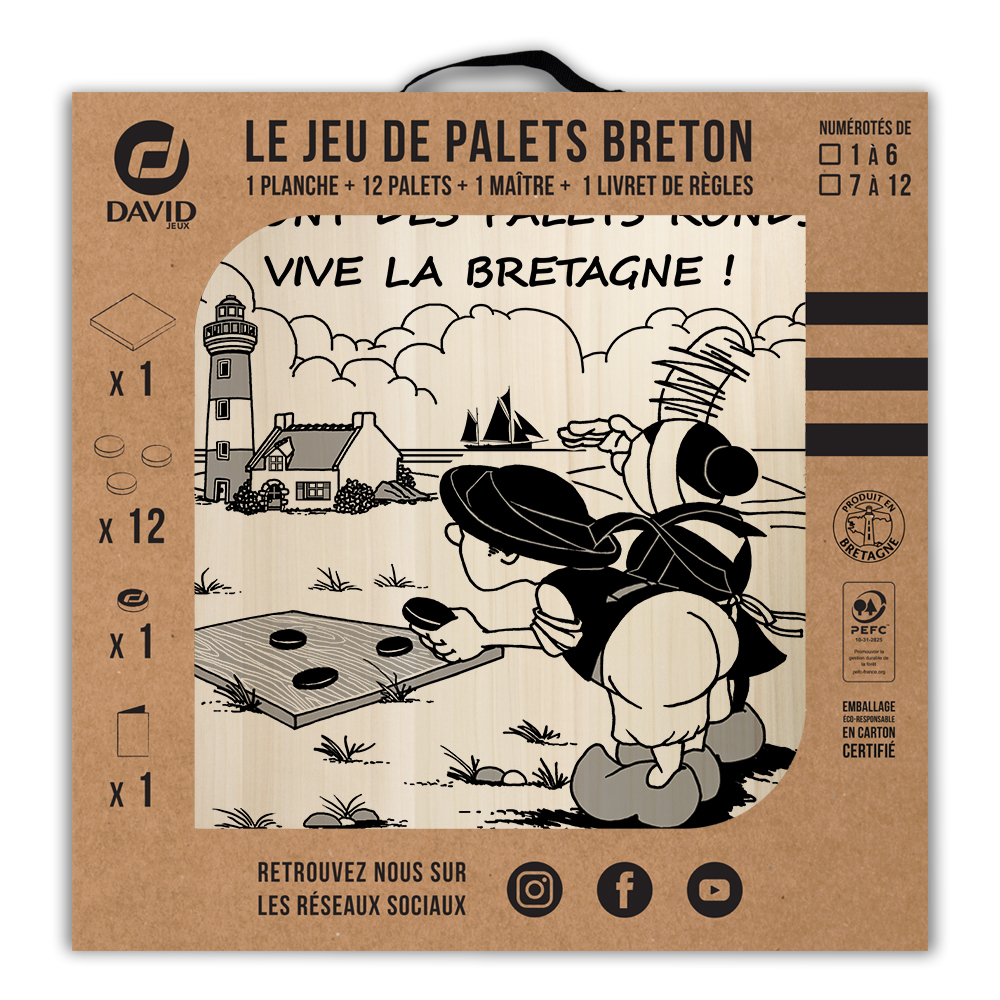 Une planche, 12 palets DAVID (de notre gamme l’Amical Breton), un maître, une règle du jeu et le tour est joué ! Vous voilà équipé pour jouer seul ou en équipe au jeu de palet. Par n’importe quel temps, en intérieur ou en extérieur, sortez votre planche et partagez une activité conviviale en famille ou entre amis.