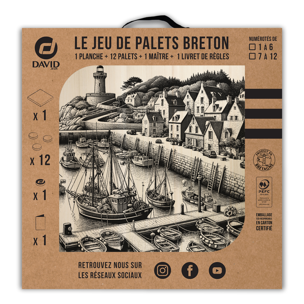 Une planche, 12 palets DAVID (de notre gamme l’Amical Breton), un maître, une règle du jeu et le tour est joué ! Vous voilà équipé pour jouer seul ou en équipe au jeu de palets breton. Par n’importe quel temps, en intérieur ou en extérieur, sortez votre planche et partagez une activité conviviale en famille ou entre amis.