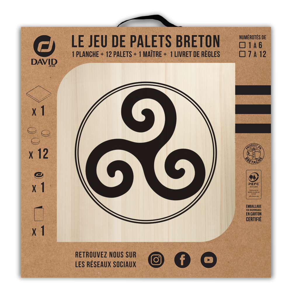 Une planche, 12 palets DAVID (de notre gamme l’Amical Breton), un maître, une règle du jeu et le tour est joué ! Vous voilà équipé pour jouer seul ou en équipe au jeu de palet. Par n’importe quel temps, en intérieur ou en extérieur, sortez votre planche et partagez une activité conviviale en famille ou entre amis.