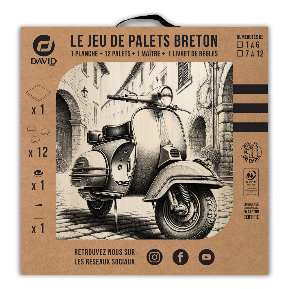 Une planche, 12 palets DAVID (de notre gamme l’Amical Breton), un maître, une règle du jeu et le tour est joué ! Vous voilà équipé pour jouer seul ou en équipe au jeu de palet. Par n’importe quel temps, en intérieur ou en extérieur, sortez votre planche et partagez une activité conviviale en famille ou entre amis.