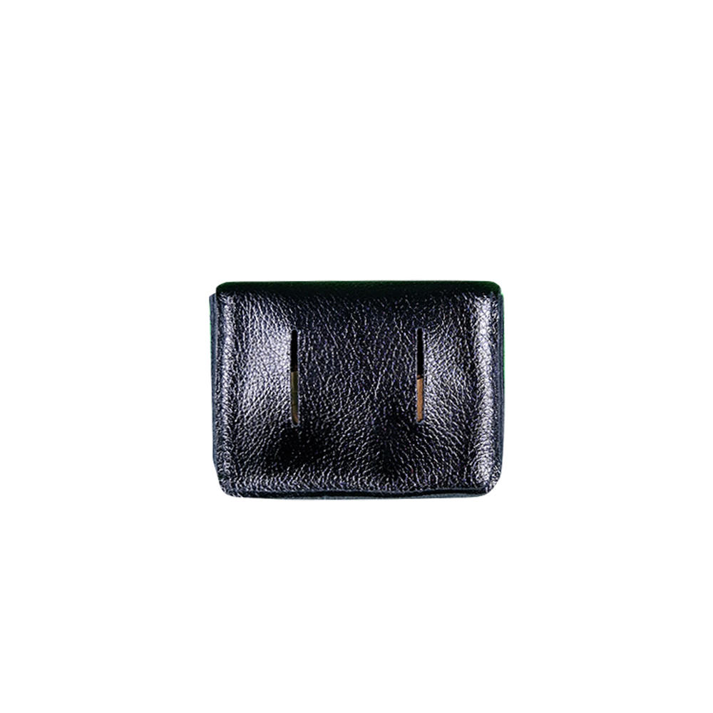 Cette trousse en croûte de cuir permet de ranger un jeu de 12 palets en laiton et un maître.
